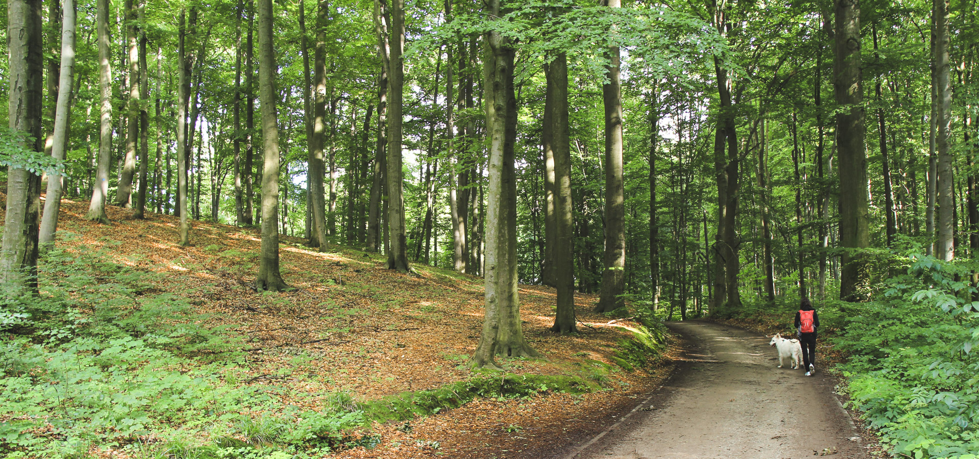 Urozmaiceniem terenu, dodającym mu szczypty ekspresji w jego uładzonym charakterze jest jego pagórkowatość - najwyższy punkt lasu znajduje się na wysokości 244 metrów. Do tego dorzucić trzeba jeszcze ścieżki, które od czasu do czasu gwałtownie zmieniają kierunek, łączą się ze sobą i rozwidlają, wymagając od nas nieustannej czujności - nie chcemy przecież stracić spod stóp obranego szlaku.