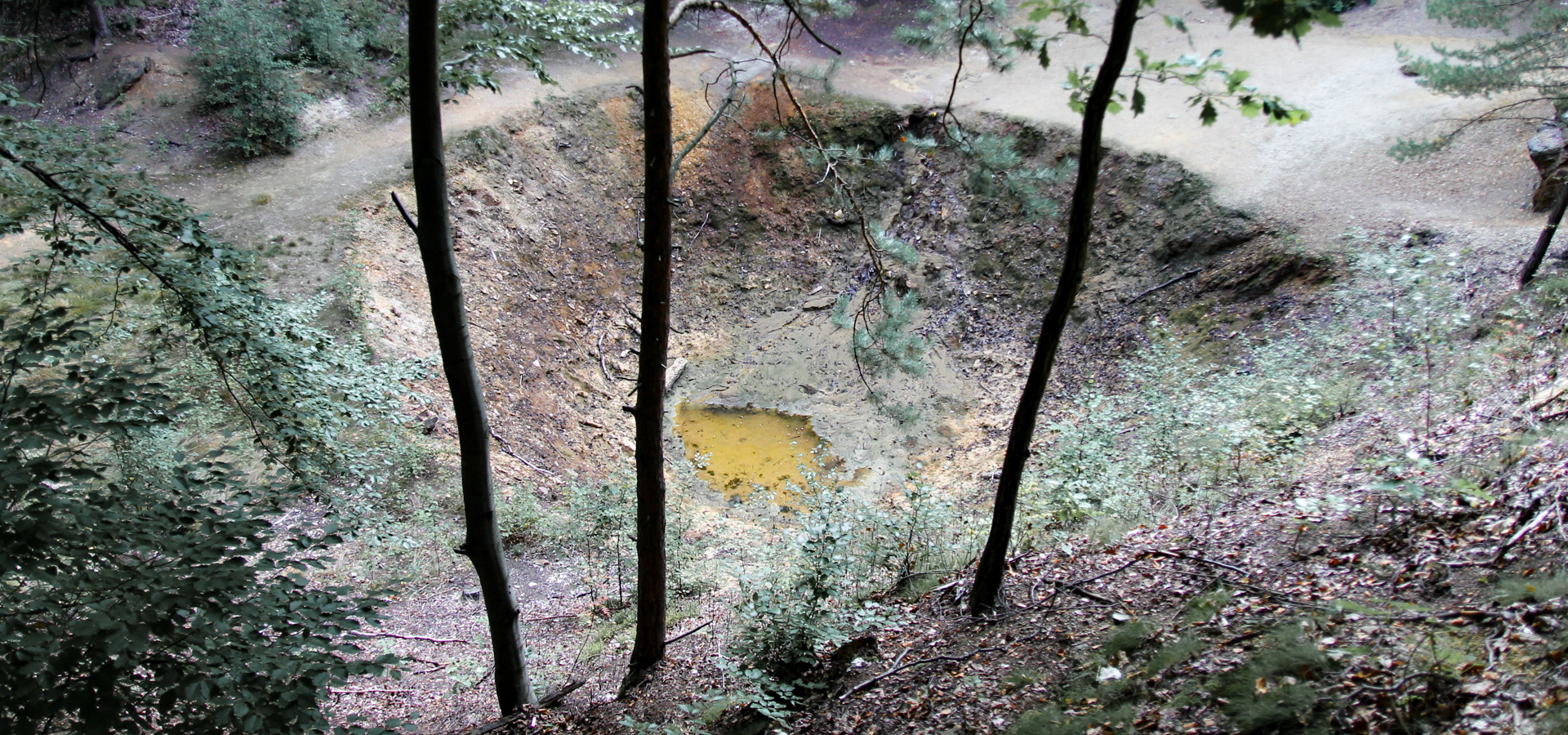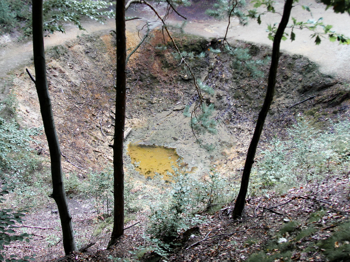W tym miejscu wydobywano od 1785 roku piryt, z którego rudy wytwarza się żelazo i kwas siarkowy. Jeziorko swój kolor zawdzięcza właśnie temu ostatniemu.