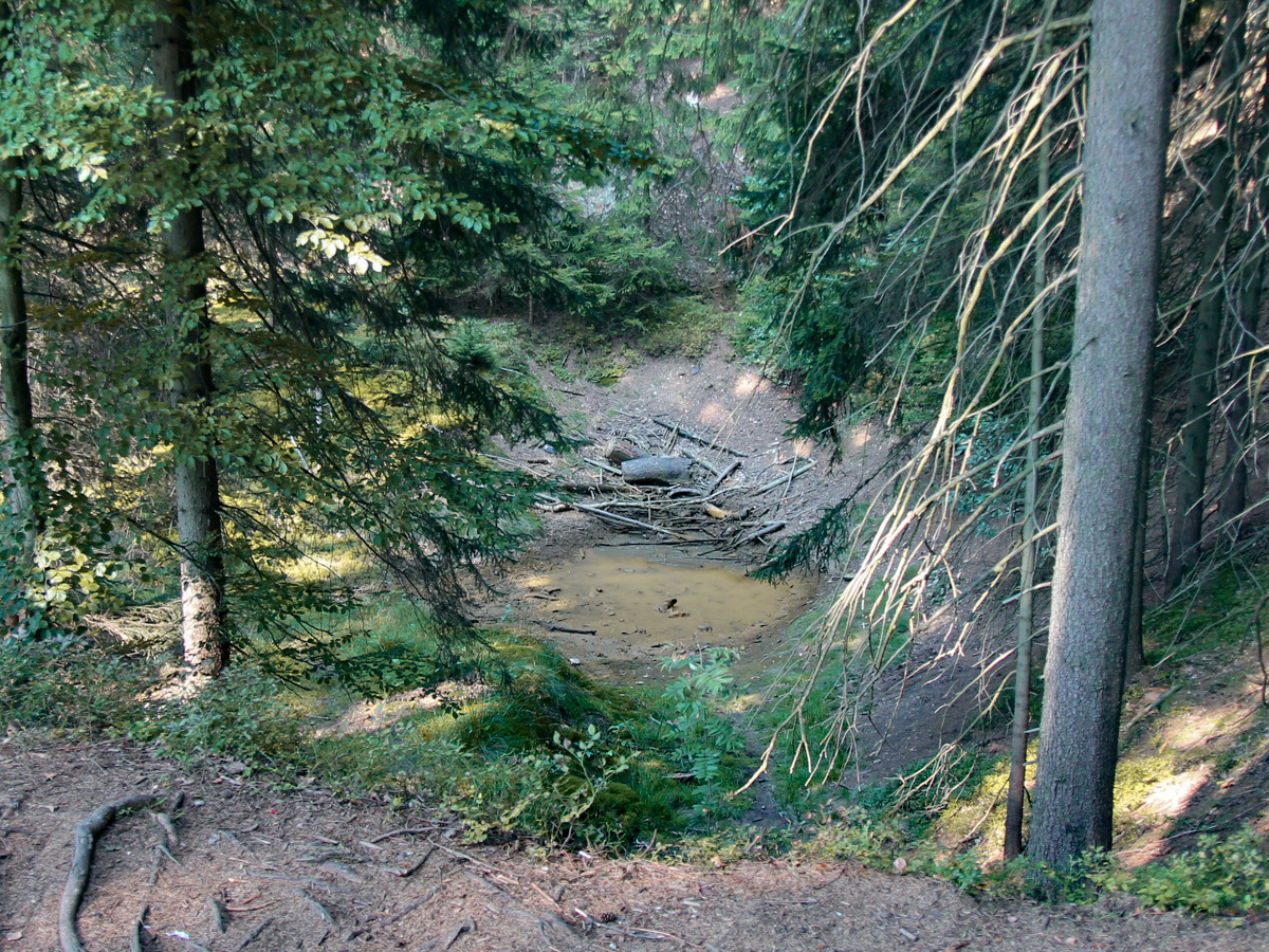 Zielone jeziorko wypełnione wodą, to rzadki widok (ku rozczarowaniu części turystów), gdyż lej wypełnia się po bardzo, ale to bardzo obfitych opadach deszczów. Podobno ostatni raz można go było podziwiać w 1997 roku - roku wielkiej powodzi, kiedy to wypełniło się wodą w kolorze grafitowym (stąd też czasami jest nazywane czarnym jeziorkiem).