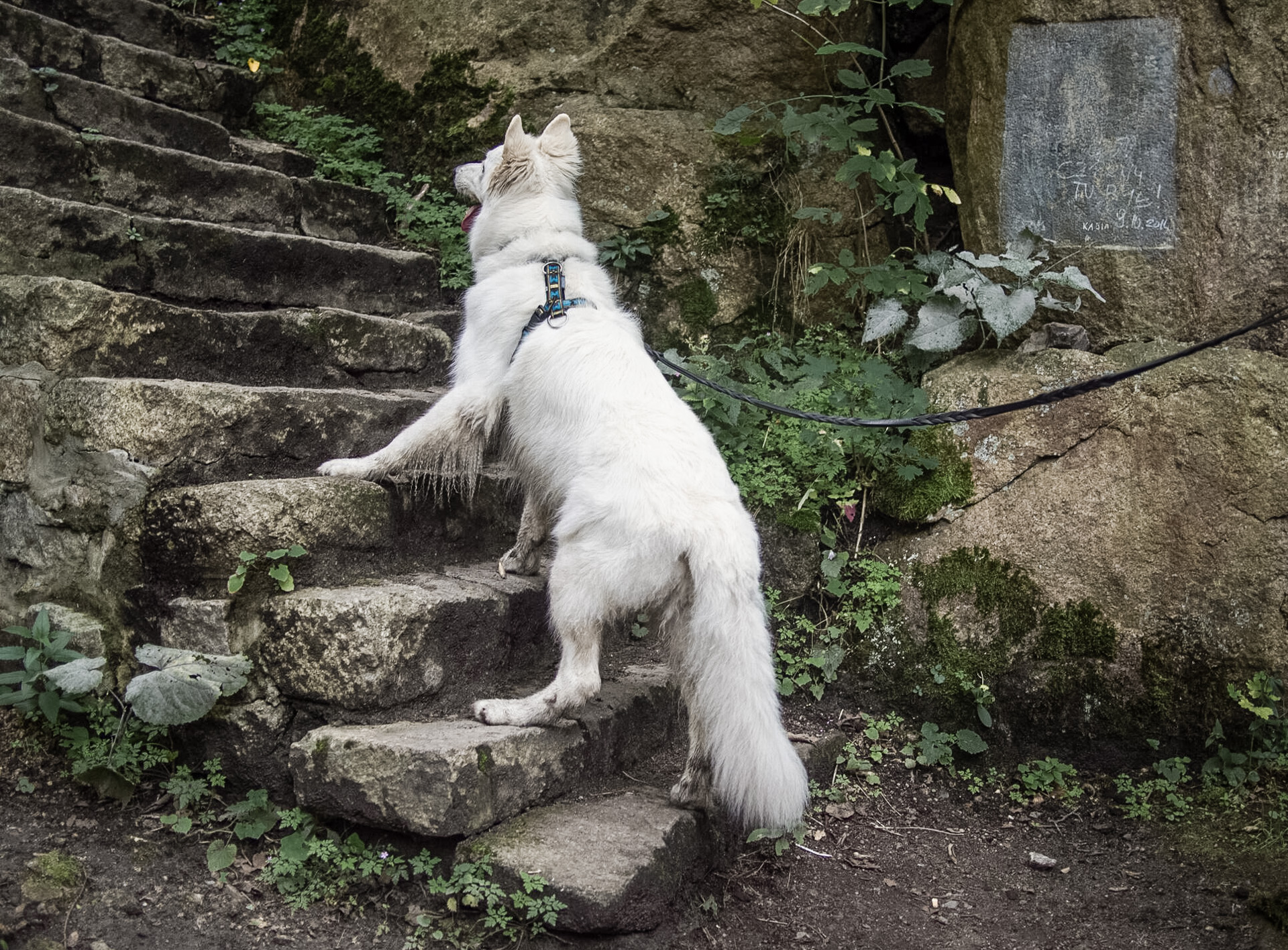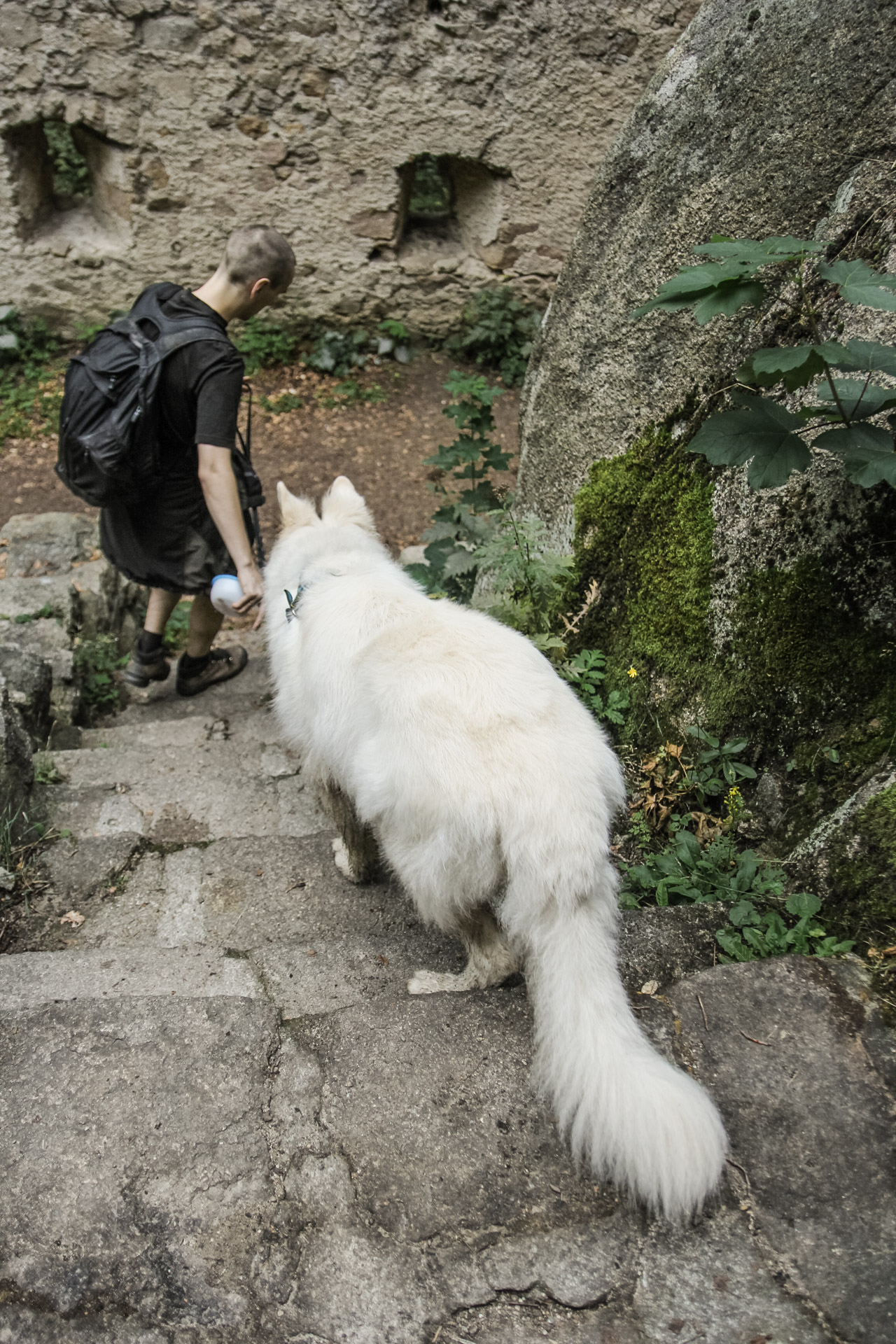 Dla samego psa natomiast największą przeszkodą będzie nachylenie. Część schodów jest długa i stroma, a co za tym idzie, dla większości czworołapych wydaje się być nie do pokonania. Heban często zostawał z tego powodu na dole, a my niektóre z miejsc zwiedzaliśmy w systemie zmianowym.