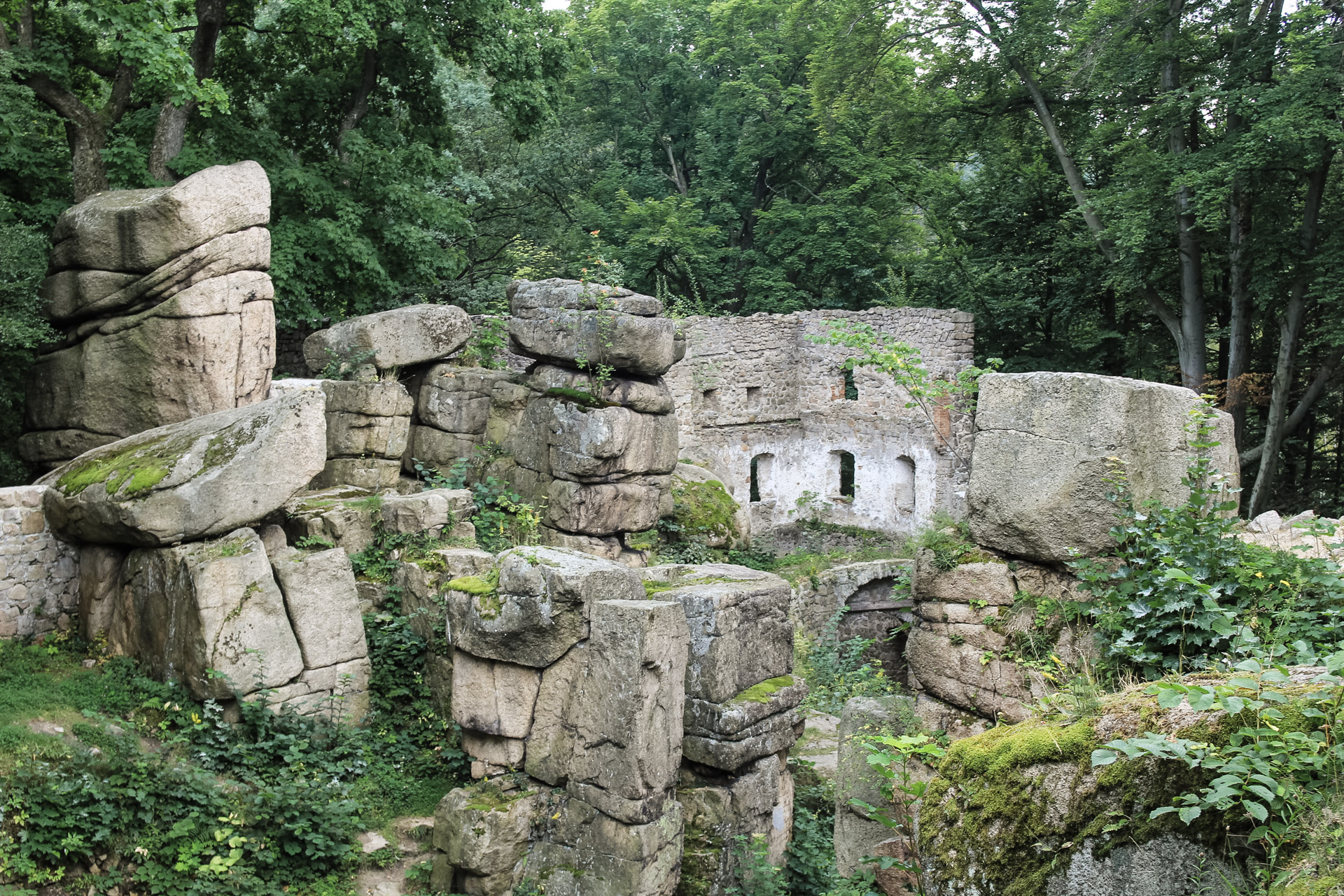 Ruiny Bolczów podwójnie wpisują się w granitowy kontekst otoczenia. Zamek zbudowany całkowicie z lokalnego granitu, podobny gabarytowo do otaczających go skałek, sprawia wrażenie jakby był po prostu kolejną z nich. Jest tylko inną, opracowaną przez człowieka formą. A sam charakter ruin? Czysty, wietrzejący ostaniec po czasach świetności. Tylko nieco bardziej rozdrobniony i regularny. :)