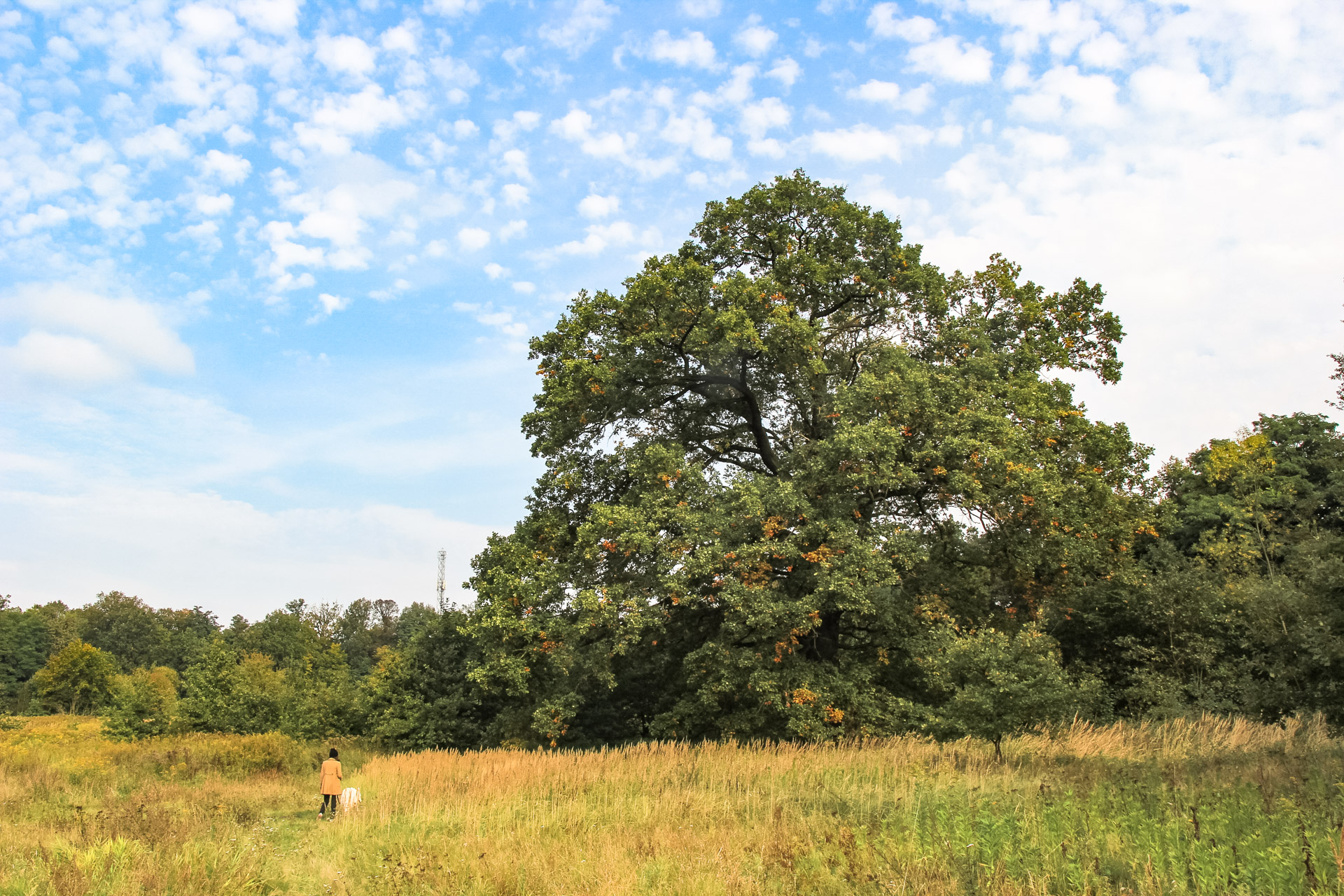 Po wejściu na polanę i łąki jedną z pierwszych rzeczy, która rzuca się w oczy jest majestatyczny dąb (że dąb wnioskujemy po pokroju), stojący na skraju lasu. Może i on pewnego dnia stanie się pomnikiem przyrody?