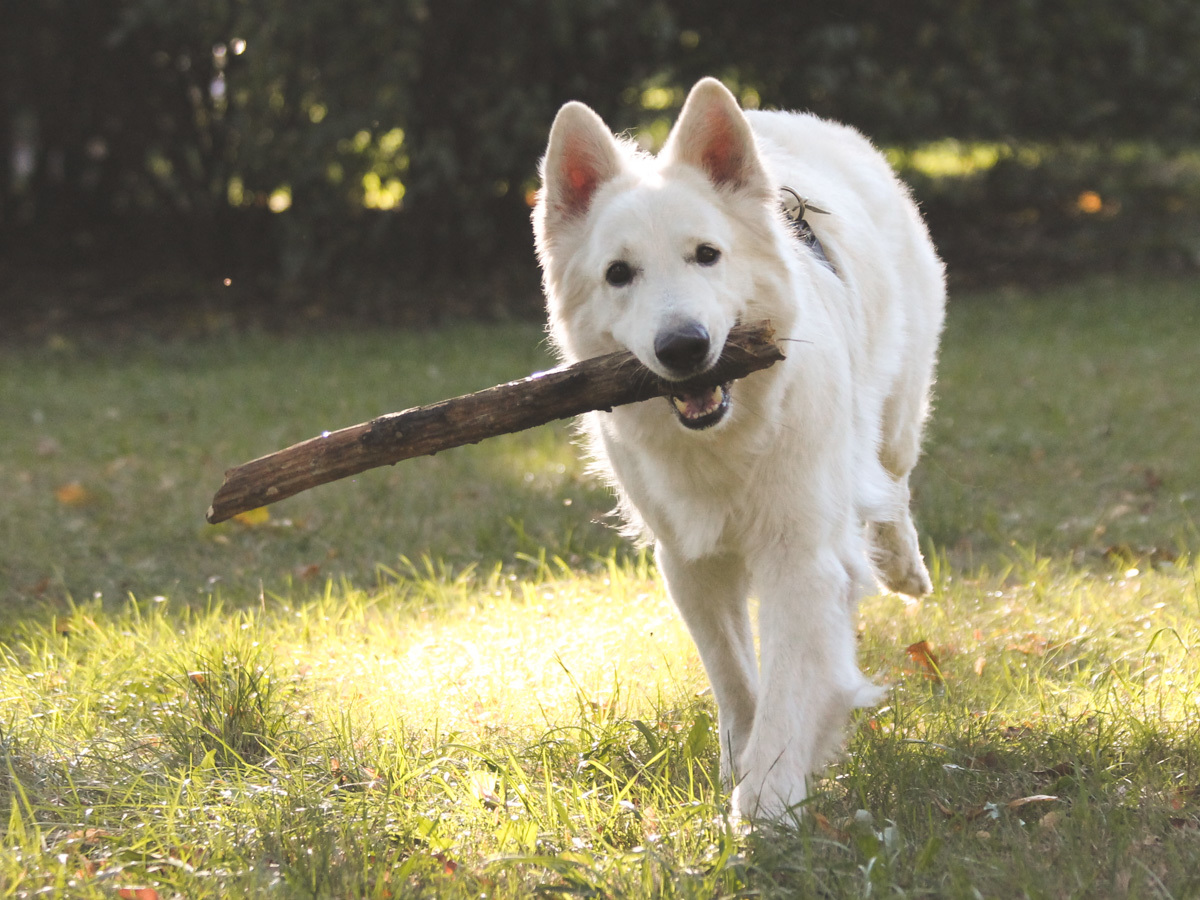 W zasadzie nie wiemy dlaczego, ale zawsze na spacerze Heban wybiera sobie jednego drewnianego przyjaciela, z którym biega przez jakiś czas i pilnuje go jak oka w głowie.