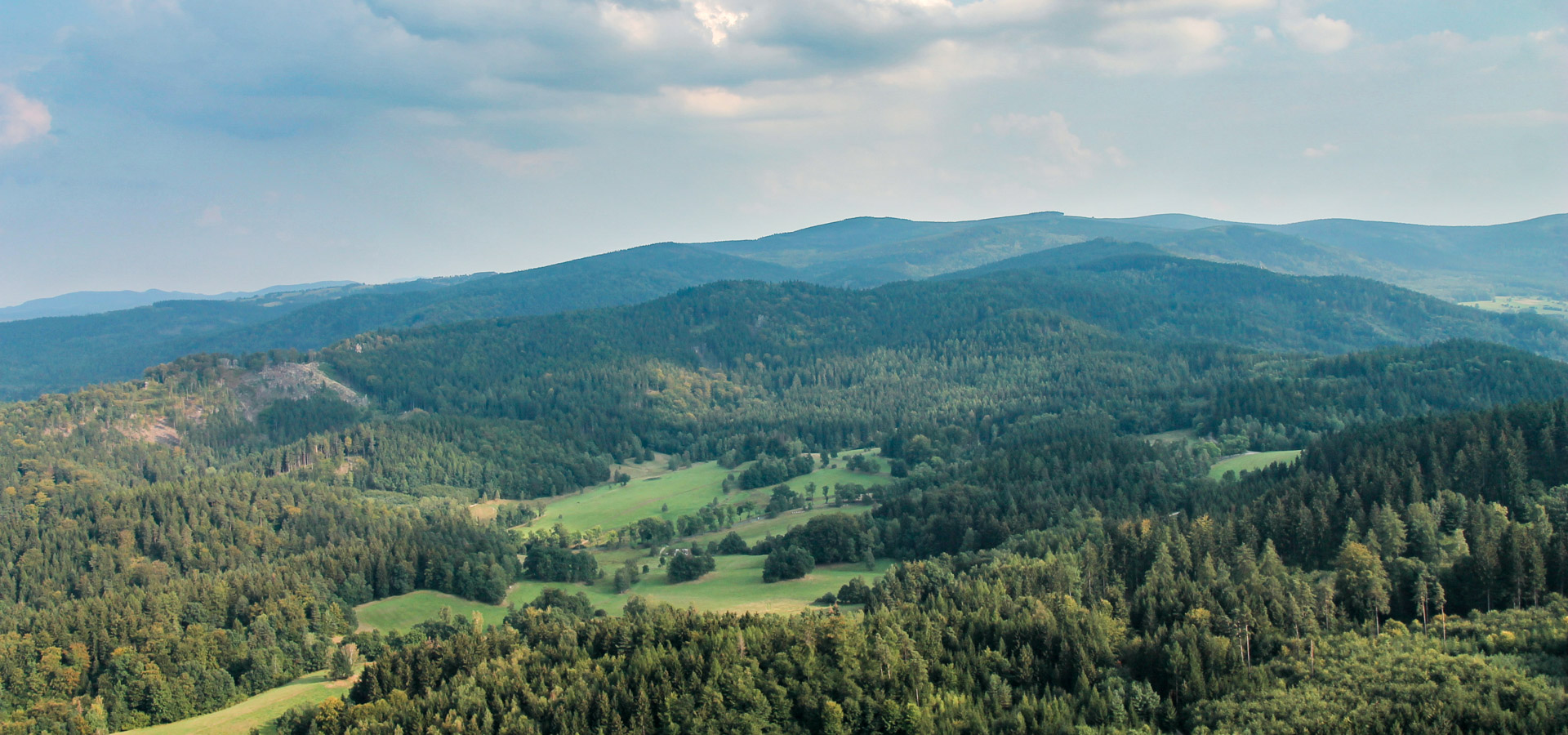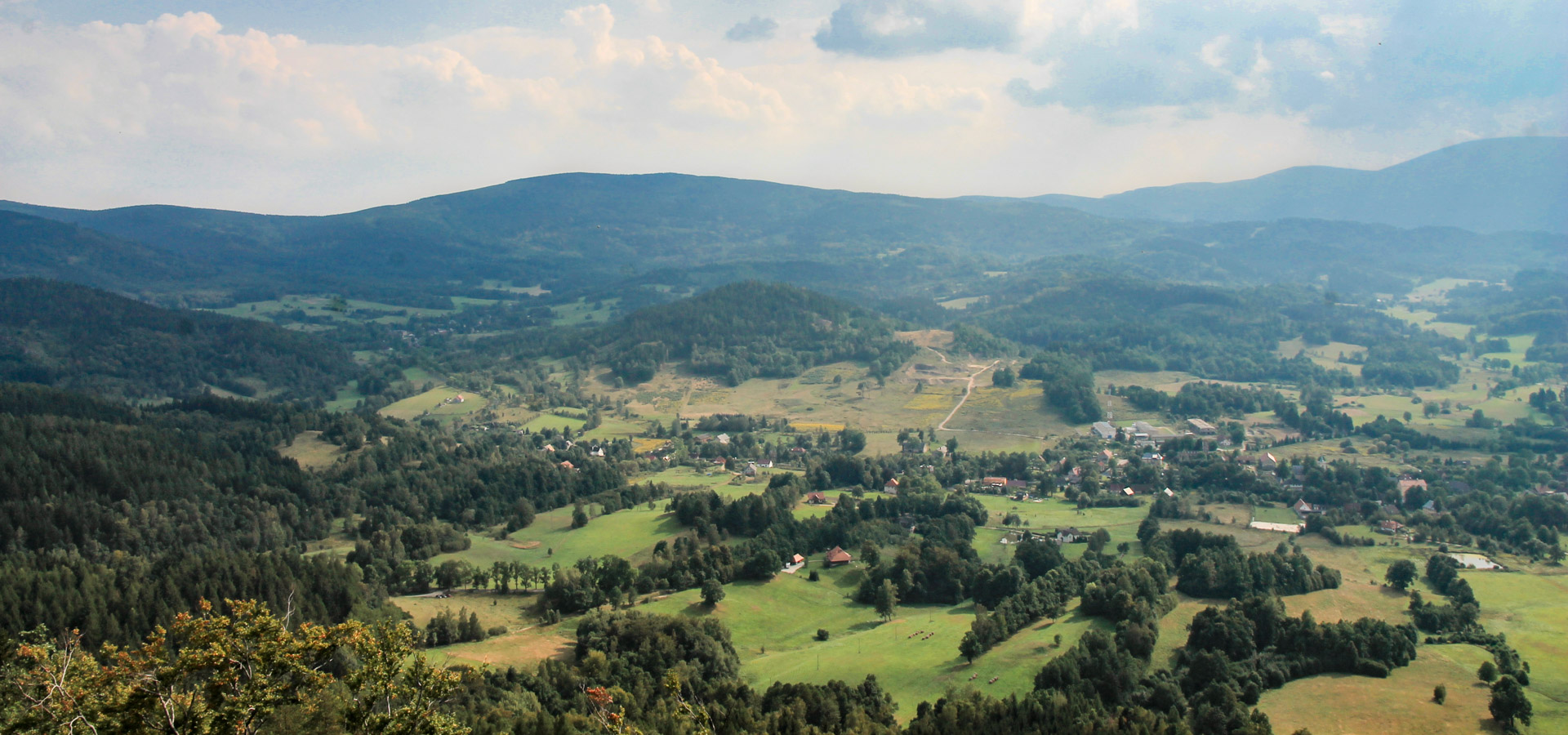 Z Sokolika rozpościera się panorama na wiele pasm i szczytów górskich (łącznie ze Śnieżką). My jednak chcielibyśmy zwrócić uwagę na widoczną na zdjęciu część Rudaw Janowickich. Z tej perspektywy góry, na które patrzymy wydają się dosyć niepozorne. Kryją jednak w sobie wiele atrakcyjnych miejsc.