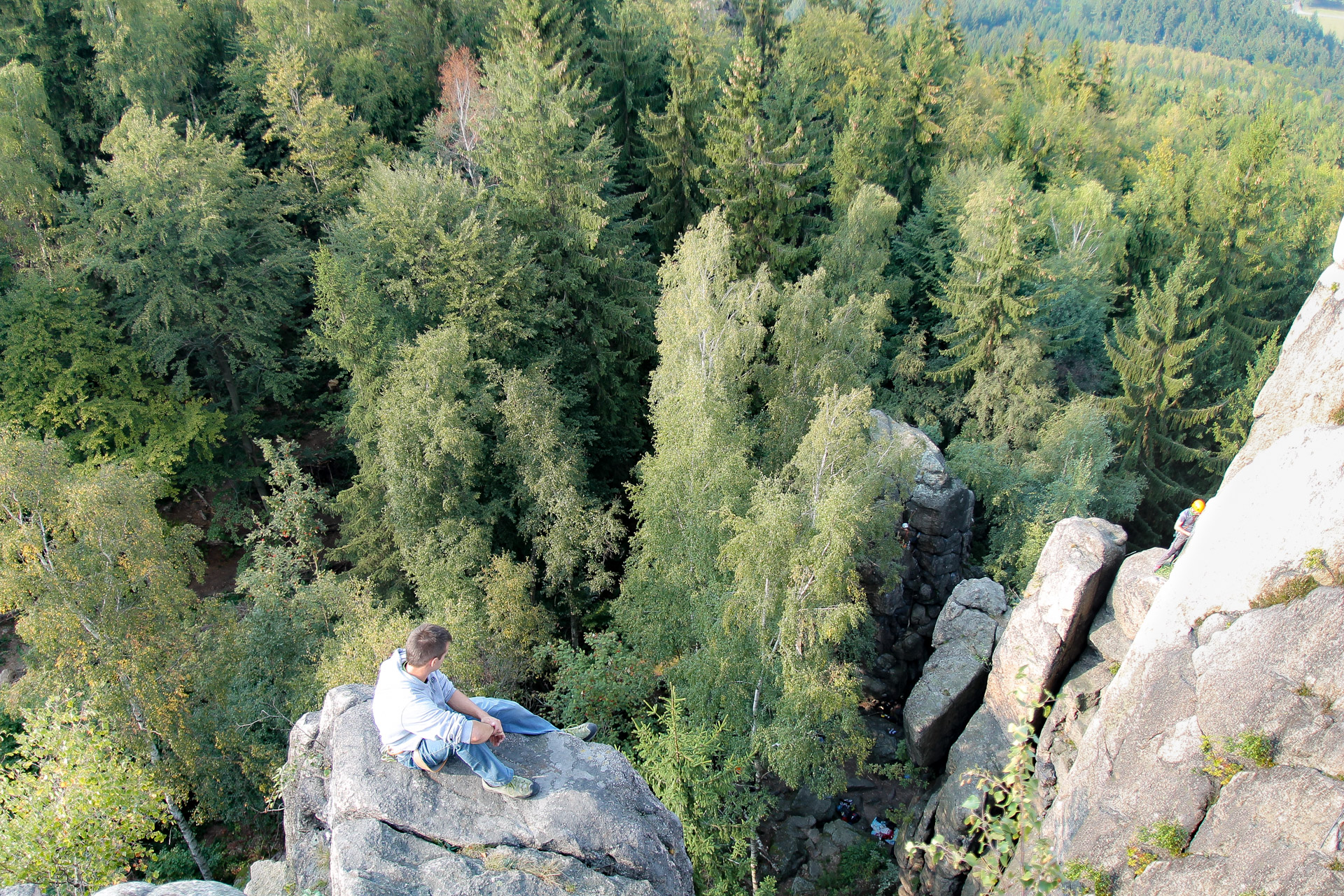 Jednym z punktów charakterystycznych panoramy, która rozpościera się z platformy to widok na wspinających się skałkowców. Widoczna na zdjęciu ławeczka idealnie się nadaje do tego, żeby na chwilę usiąść i podpatrzeć zmagania śmiałków.