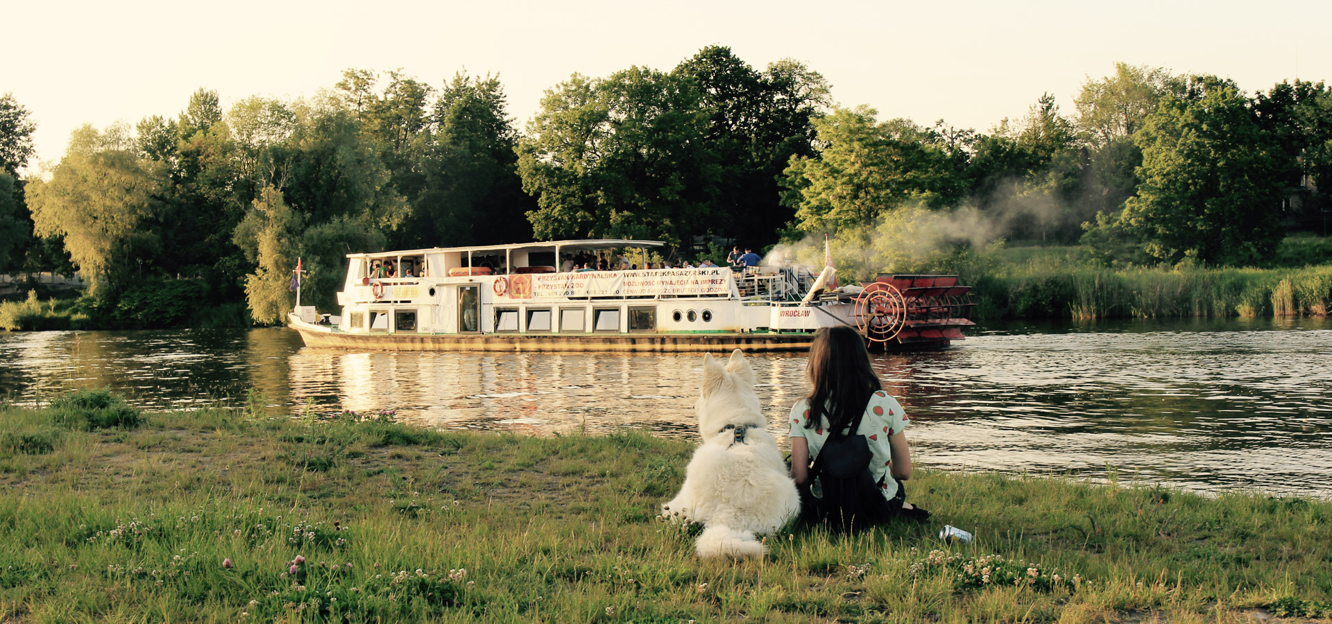 W tym miejscu zejście do Odry jest wyjątkowo przyjazne psom. Brzeg jest bardzo łagodny, wysypany piaskiem, a rzeka niespiesznie nabiera głębokości. Warto jednak pamiętać o tym, że po rzece od czasu do czasu przełynąć może statek, motorówka lub kajak (o kaczce nie wspominamy, bo to standard).